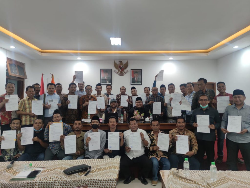 Bawaslu Jatim menyerahkan ID akses sistem informasi partai politik (Sipol) kepada Ketua Bawaslu di 38 Kabupaten/Kota yang ditandai dengan penandatanganan Berita Acara Serah Terima (BAST) dan surat pernyataan menjaga kerahasian, di Surabaya, Selasa (9/08/2022).
