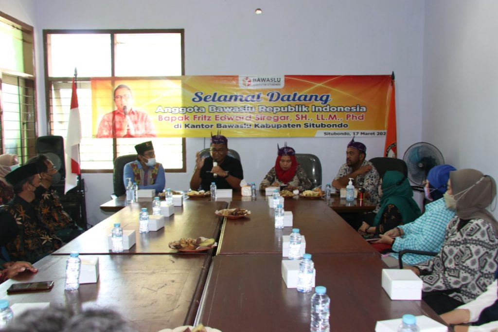 Anggota Bawaslu, Fritz Edward Siregar melakukan kunjungan kerja ke Jawa Timur. Kamis (17/03/2022) Fritz memulai perjalanannya ke Bawaslu Situbondo.