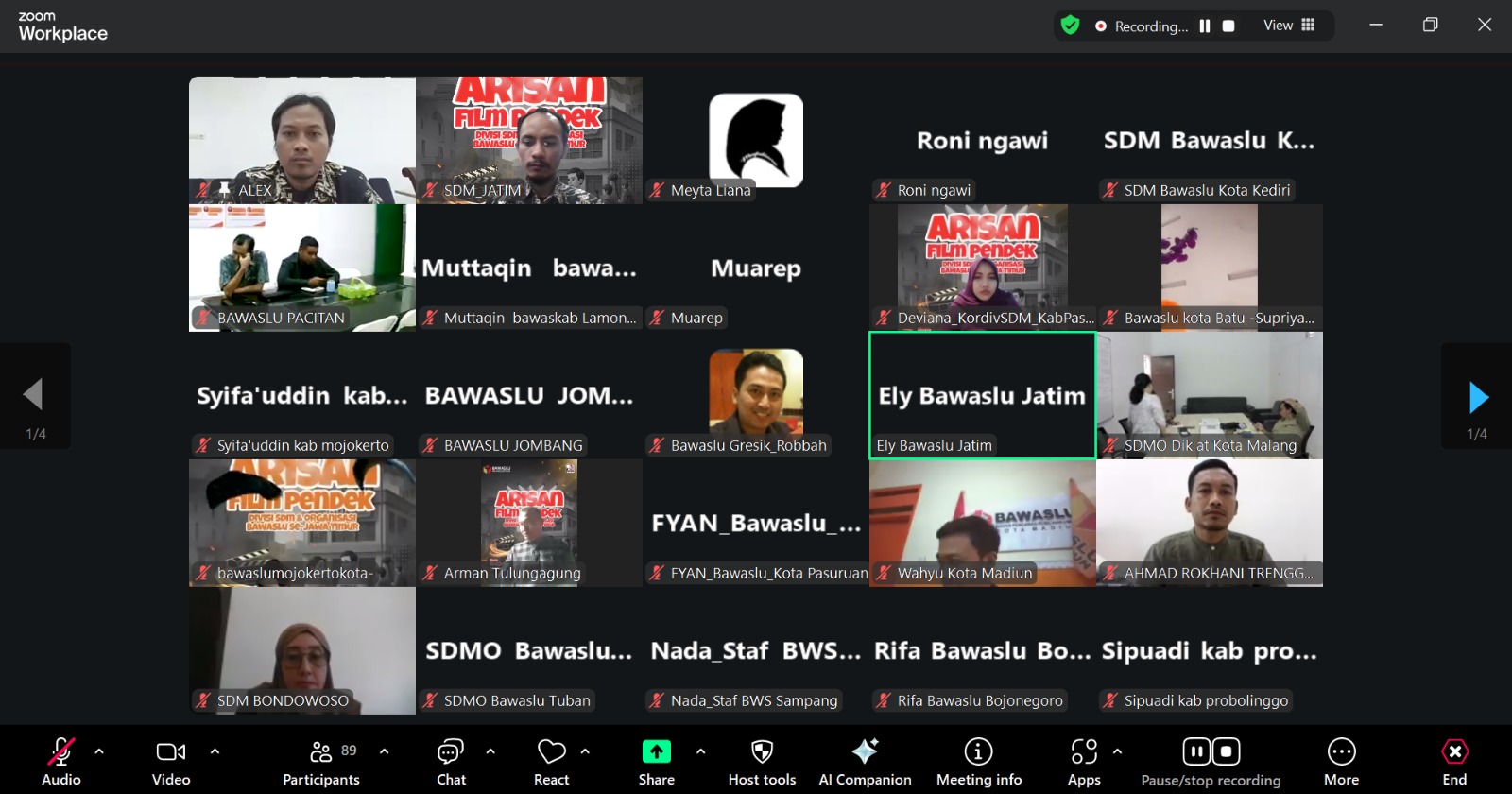 Suasana diskusi daring Arisan Film Pendek Divisi SDMO se-Jawa Timur pada, Kamis, 28 Agustus 2025