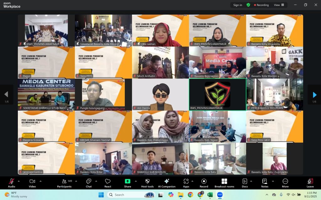 Suasana Peer Learning via Daring Bawaslu se-Jawa Timur pada Kamis, 11 September 2025