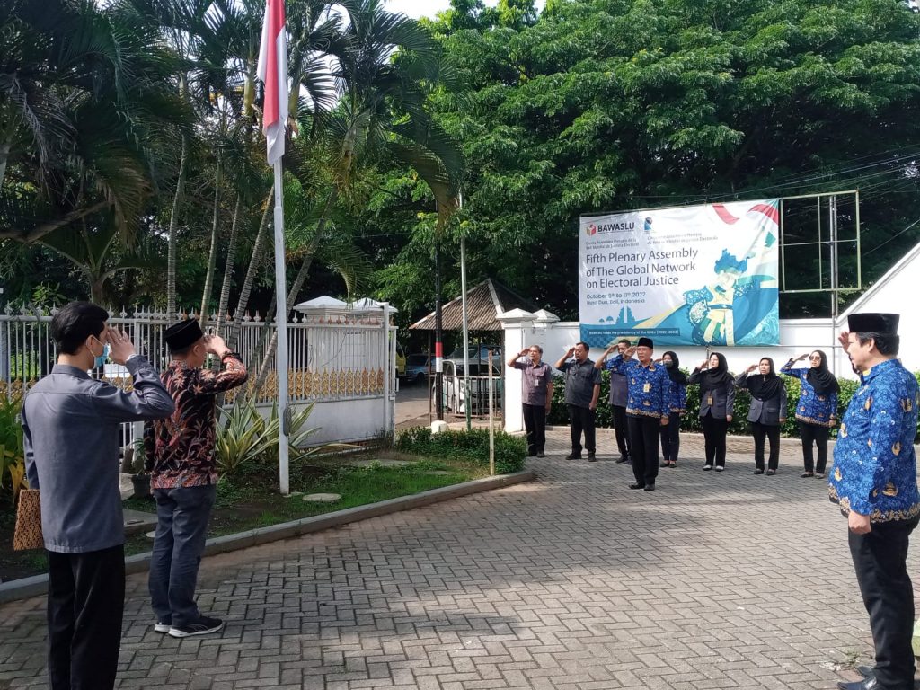 Keluarga Besar Bawaslu Jatim memperingati Hari Sumpah Pemuda yang ke-94 tahun, Jumat (28/10/2022). Bertindak sebagai inspektur upacara Ketua Bawaslu Jatim, A. Warits.