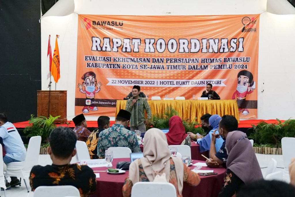 Kerja Bawaslu dalam mengawasi tahapan Pemilu 2024 perlu tersampaikan dengan baik kepada publik. Anggota Bawaslu Jatim, Abdul Quddus Salam mendorong Bawaslu Kabupaten/Kota se-Jatim untuk menjadi pusat informasi bagi wartawan media massa. Hal ini ia sampaikan dalam Rapat Koordinasi Evaluasi Kehumasan dan Persiapan Humas Bawaslu Kabupaten/Kota se-Jatim dalam Pemilu 2024, Selasa (22/11/2022).