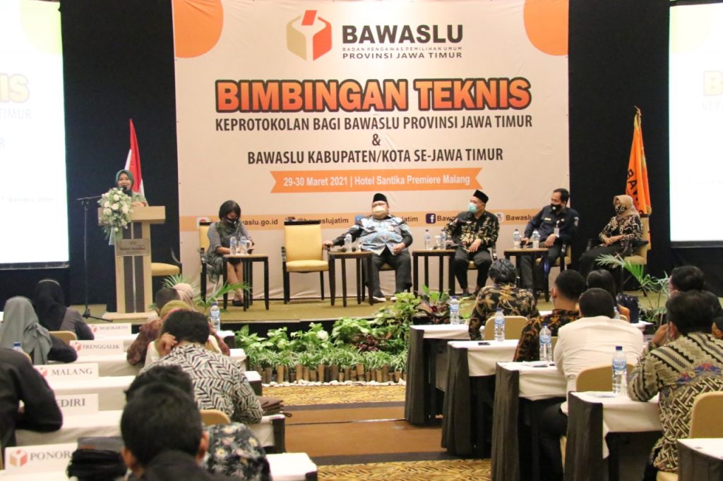 Dunia protokol identik dengan lembaga negara. Baik tidaknya pelaksanaan suatu acara ditentukan peran protokoler. Untuk pertama kalinya Bawaslu Jatim menyelenggarakan bimbingan teknis keprotokolan, Senin (29/03) di Malang