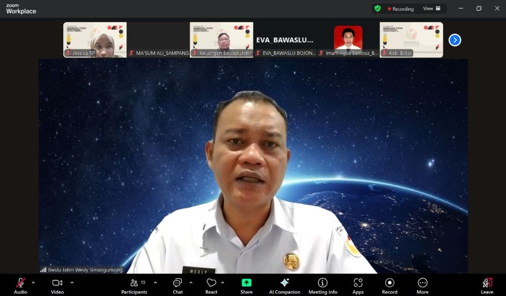 Dalam rangka mewujudkan tanggung jawab terhadap publik, sekretariat Bawaslu Provinsi Jawa Timur kembali memperkuat pengelola Barang Milik Negara (BMN) pada 15 Satuan Kerja Baru via daring, pada Rabu (10/09/2025).
