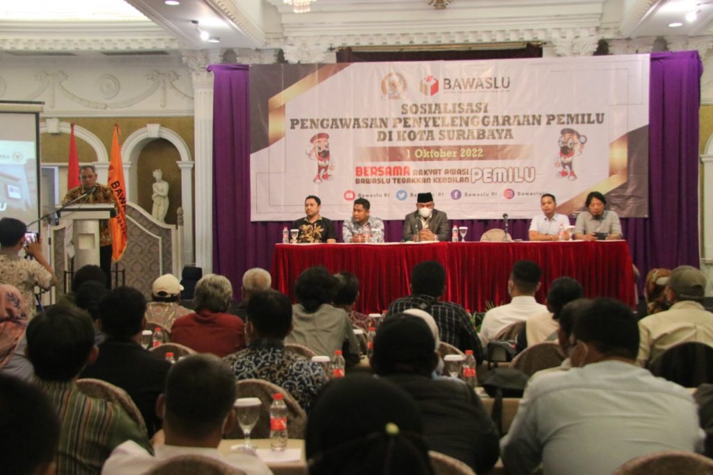 Anggota Bawaslu Republik Indonesia, Totok Hariyono mengajak warga Surabaya yang terdiri dari tokoh agama, pemilih pemula, perwakilan organisasi kemasyarakatan dan juga perwakilan perempuan untuk bersama Bawaslu dalam mencegah pelanggaran pemilu. Hal ini ia sampaikan saat sosialisasi Penyelenggaraan Pemilu, Sabtu (01/10/2022) di Kota Surabaya.